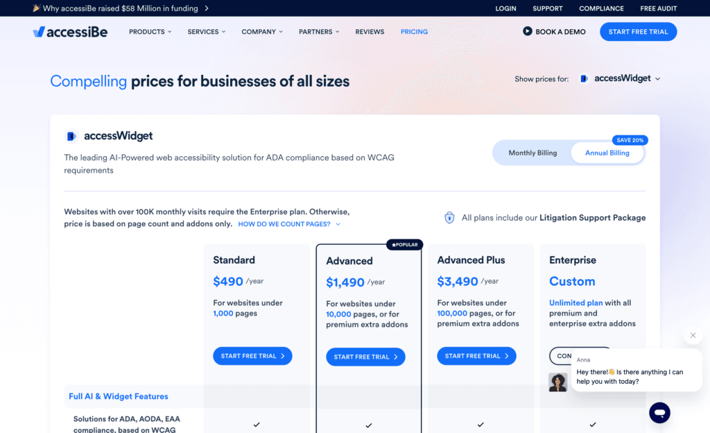 accessScan is offered as a free service to users. For additional accessibility solutions, including full remediation and ongoing monitoring, businesses can explore other products within accessiBe’s suite.